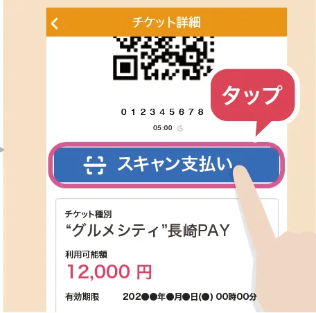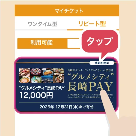 アプリホーム画面のマイチケットから、グルメシティ長崎PAYをタップします。
