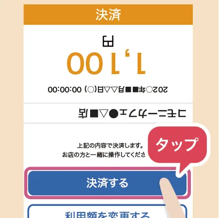 金額が反転するので、金額を確認し「決済する」をタップします。